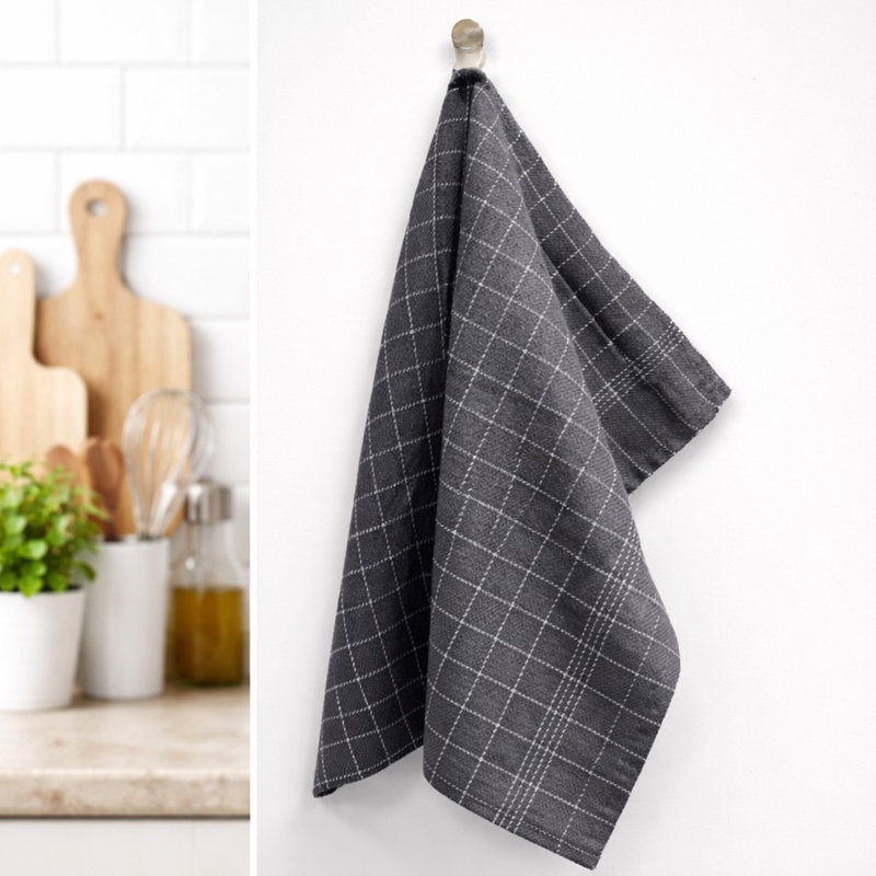 Disse mørkegrå viskestykker i 3-pak repræsenterer de klassiske kokkeviskestykker med et stilfuldt hvidt ternet mønster. Det tidløse design sammen med det moderne mørkegrå look giver både et elegant og praktisk udtryk, der passer godt til ethvert køkken. Viskestykkerne er lavet af 100% bomuld, hvilket garanterer høj absorberingsevne og effektiv tørring af både service, hænder og køkkenoverflader. Med dimensionerne 50 x 70 cm er de ideelle til daglig brug, hvad enten det er hjemme eller i et professionelt køkken.