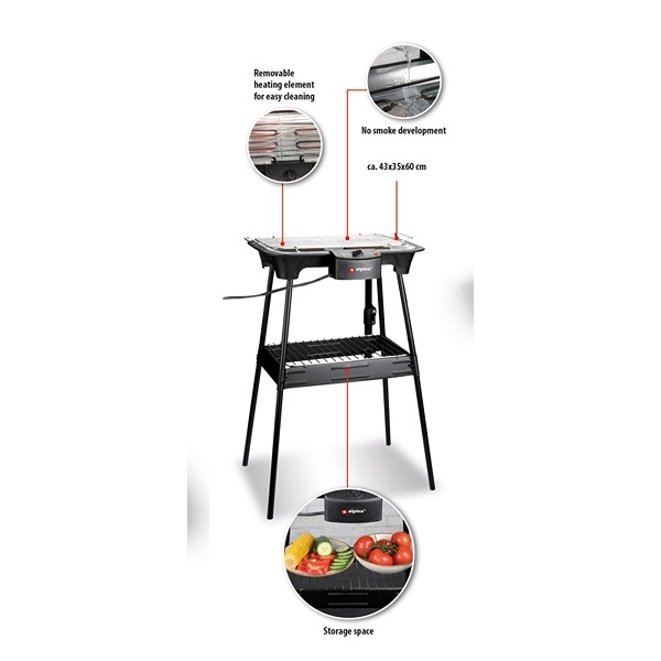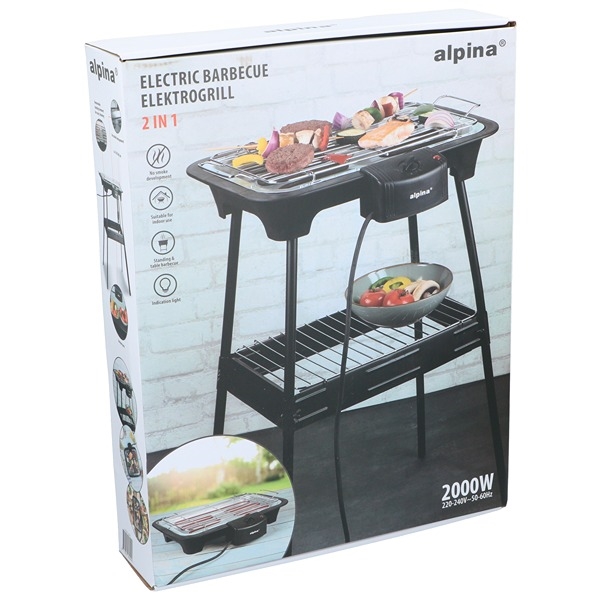 Produkt:  Alpina 2-i-1 Bord- og Standelgrill 2000W til Inde & Ude, Sort