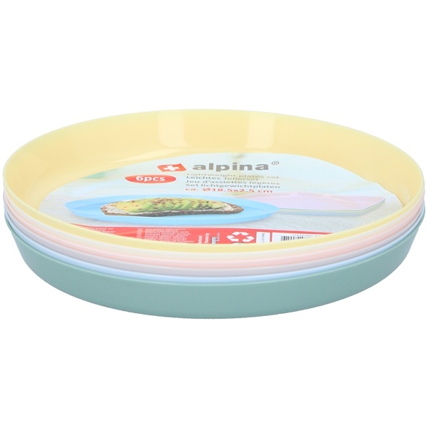 Produkt:  Alpina Plastik Tallerkener, Sæt af 6 i Varierende Farver