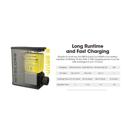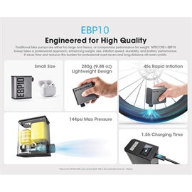 Kvik-købNitecore EBP10 Elektrisk Cykelpumpe 144 PSI / 9,93 Bar