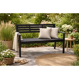 Kvik-købSort havebænk i Polywood med armlæn, 115 cm lang