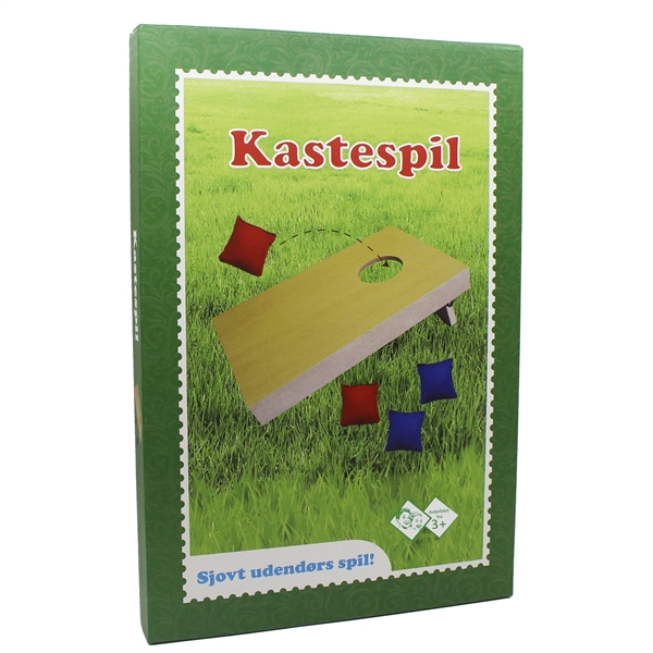 Et klassisk kastespil i træ, der hurtigt samler hele familien om en sjov aktivitet. Det passer til både børn fra 3 år og voksne. Spillepladen måler 40 x 27 x 2,5 cm og leveres med 4 ærteposer i rød og blå. Den solide trækonstruktion gør spillet oplagt til haven, terrassen, stranden eller sommerfesten.