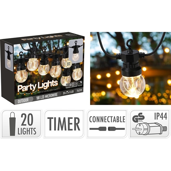 LED Party Lyskæde 9,5 m, 20 LED Pærer, Varm Hvid - UdvidbarLED Party Lyskæde 9,5 m, 20 LED Pærer, Varm Hvid - UdvidbarLED Party Lyskæde 9,5 m, 20 LED Pærer, Varm Hvid - Udvidbar