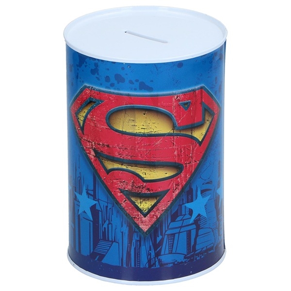 Gør det spændende at spare op med denne stærke Superman sparebøsse i metal, pyntet med det ikoniske Superman design. Kun en dåseåbner kan åbne sparebøssen, så fristelsen til at fjerne pengene for tidligt undgås. Med en diameter på 10 cm er det kompakte design oplagt til skrivebord eller hylde. En ideel gaveidé til alle Superman-entusiaster – både store og små.