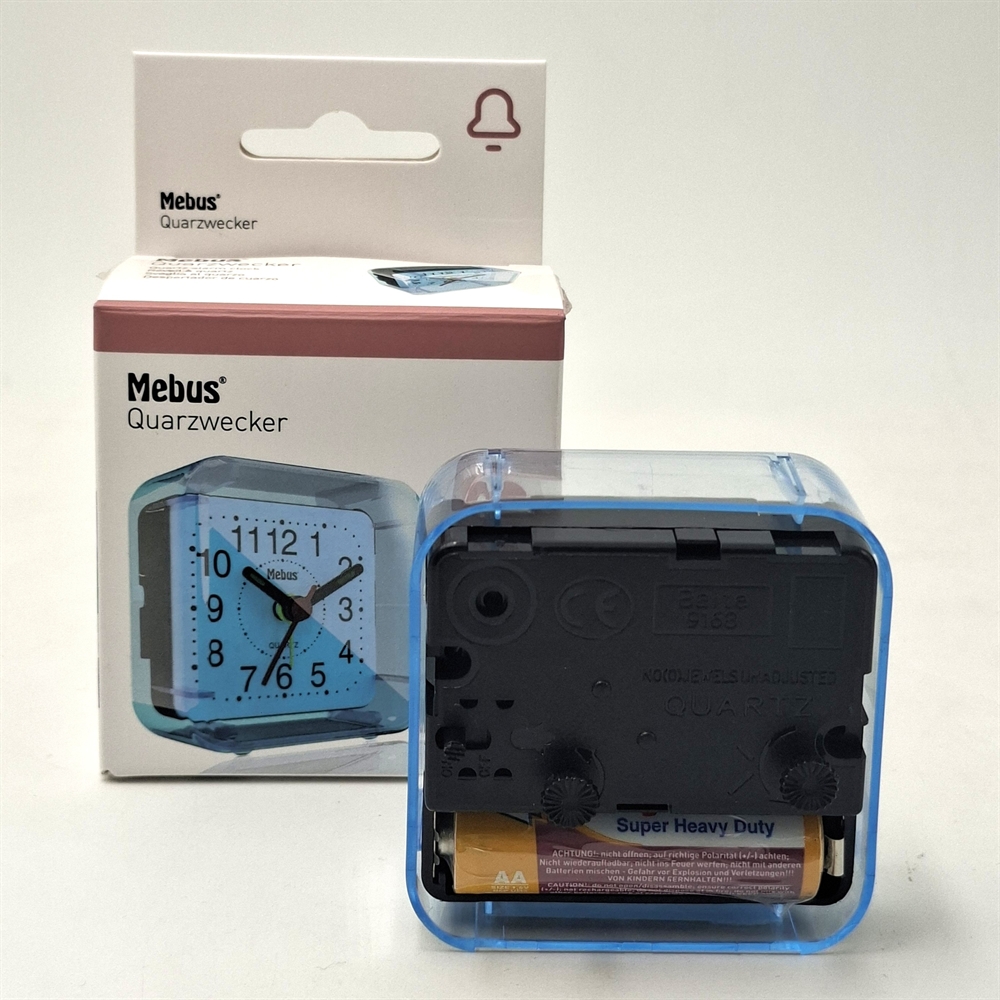 Produkt:  Mebus Analogt Vækkeur 5,8x5,8 cm, Transparent Blå