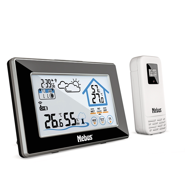 Produkt:  Mebus Trådløs Vejrstation med Sensor, Sort og Sølv