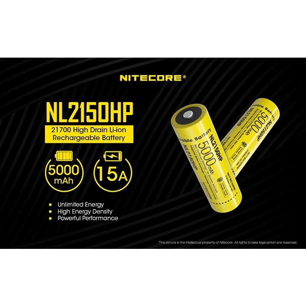 Nitecore NL2150HP er et kraftfuldt 21700 Li-ion batteri, der tilbyder en kapacitet på 5000mAh og en konstant afladning på 15A. Ideelt til stærke lommelygter og andet højt energikrævende udstyr, sikrer dette batteri både langvarig drift og stabil ydeevne, mens avancerede sikkerhedsfunktioner beskytter det.