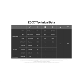 Kvik-købNitecore EDC17 Genopladelig LED-lampe med UV-lys og laser, 1500 Lumen