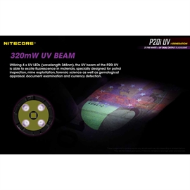 • UV lygter er også en del af Nitecores store lygtesortiment, UV lygter bruges til at finde rav, spore narkotika eller tjekke ægtheden af pengesedler.