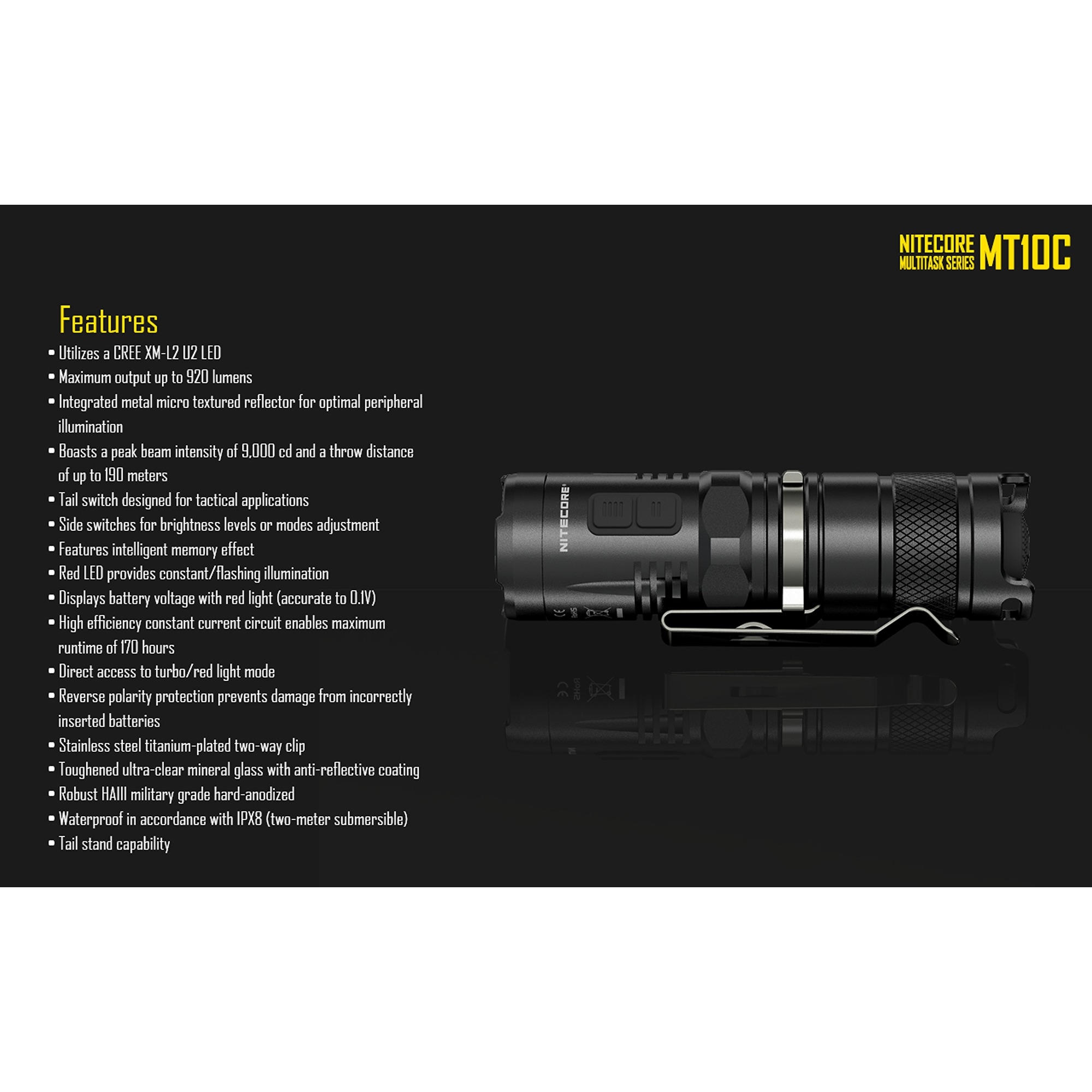 Produkt:  Nitecore MT10C genopladelig lommelygte – 920 lumen