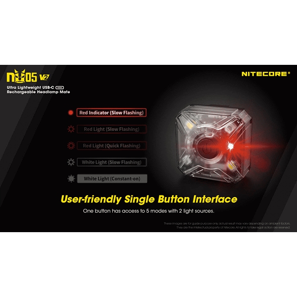 Det indbyggede Li-ion-batteri giver op til 10 timers brug med 4 lumen rød belysning og kan oplades nemt via USB-C-porten. Lygten vejer kun 11 gram, er lavet af slagfast PC-materiale og har IP66-certificering, der gør den modstandsdygtig overfor regn og støv. Du kan nemt fastgøre NU05 V2 på cykler, hjelme, tasker eller håndled, og skifte mellem lysfunktionerne med ét klik.