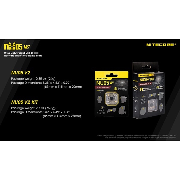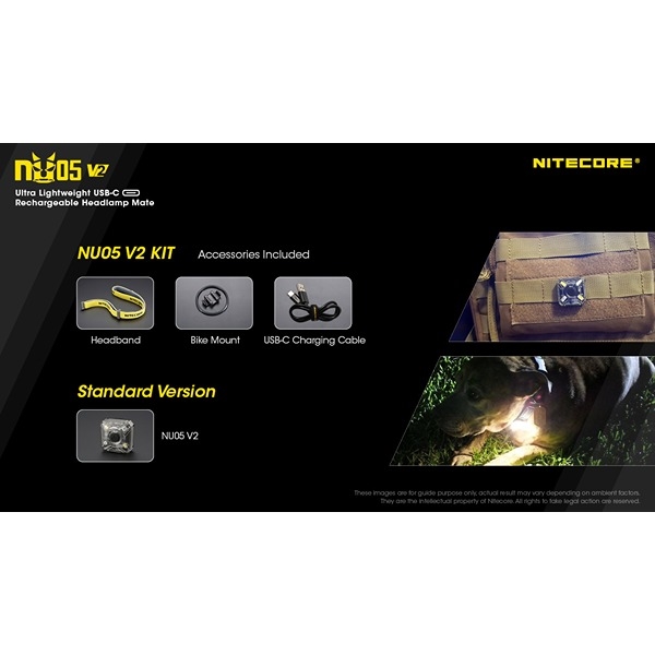 Produkt:  Nitecore NU05 V2 KIT Genopladelig Lygte til Rygsæk og Cykel, Inkl. Tilbehør