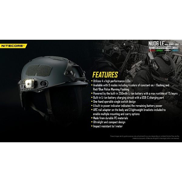 Produkt:  Nitecore NU06 LE alsidig signallygte til hjelm og rygsæk