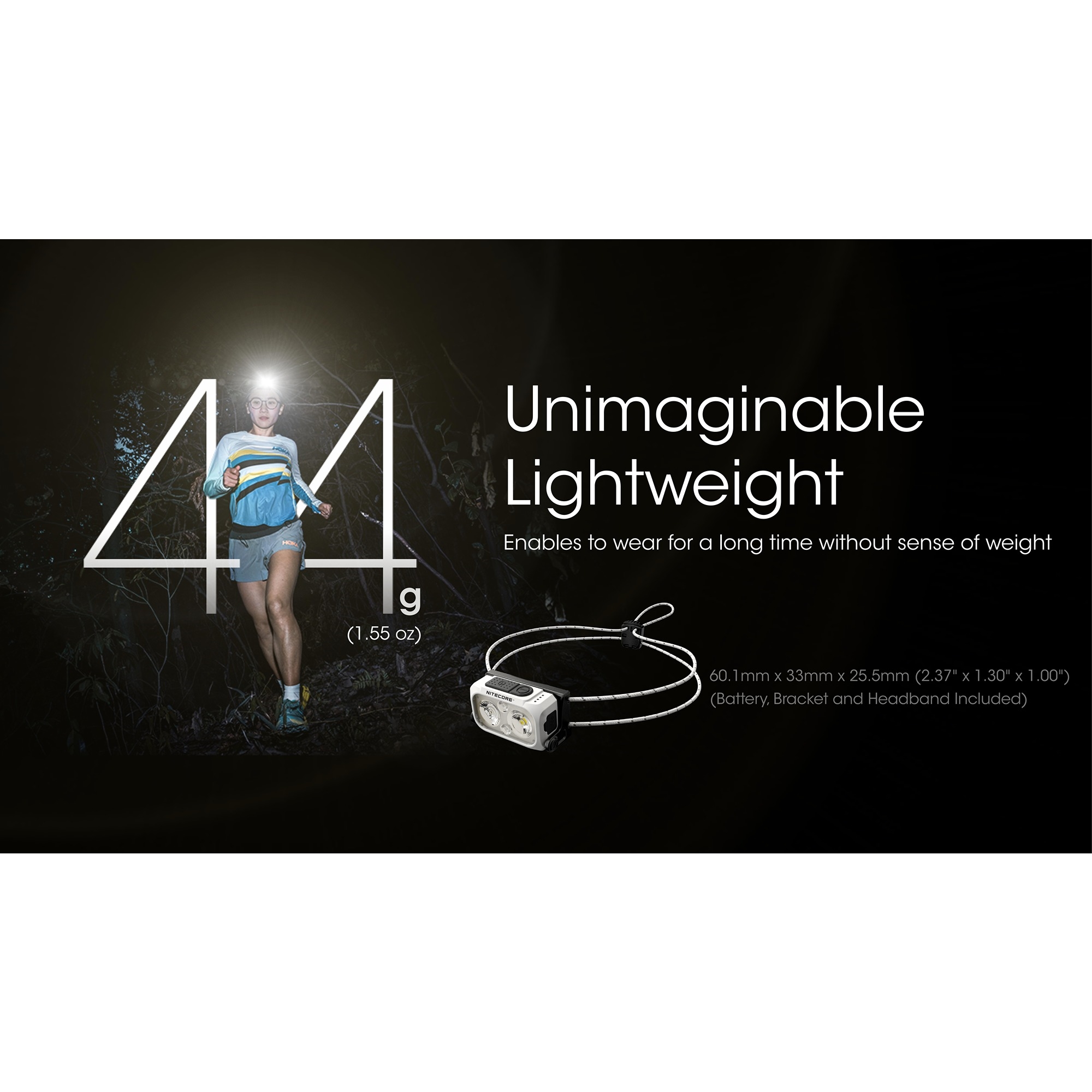 Den lave vægt og den slanke opbygning gør Nitecore NU21 oplagt til løb og anden træning med høj puls. Lampen sidder tæt mod panden og står stabilt, så den ikke hopper unødigt under bevægelse. Det elastiske, åndbare pandebånd øger komforten, også når du bruger lampen i længere tid. Pandebåndet er udført med to runde elastikbånd og har både refleksdetaljer og selvlysende elementer, så du er nemmere at se i mørke forhold.
