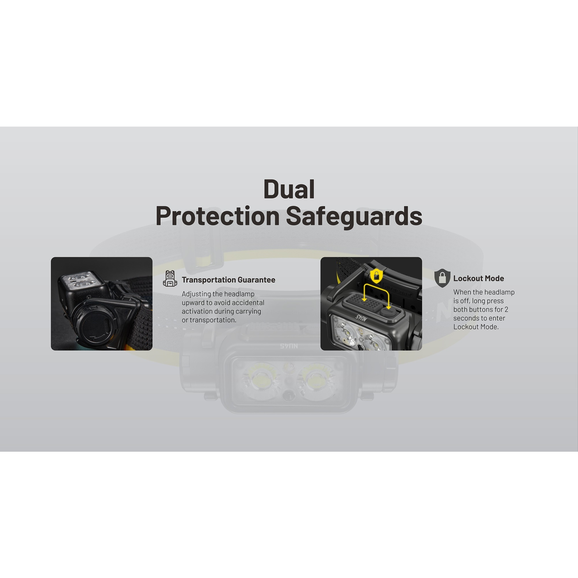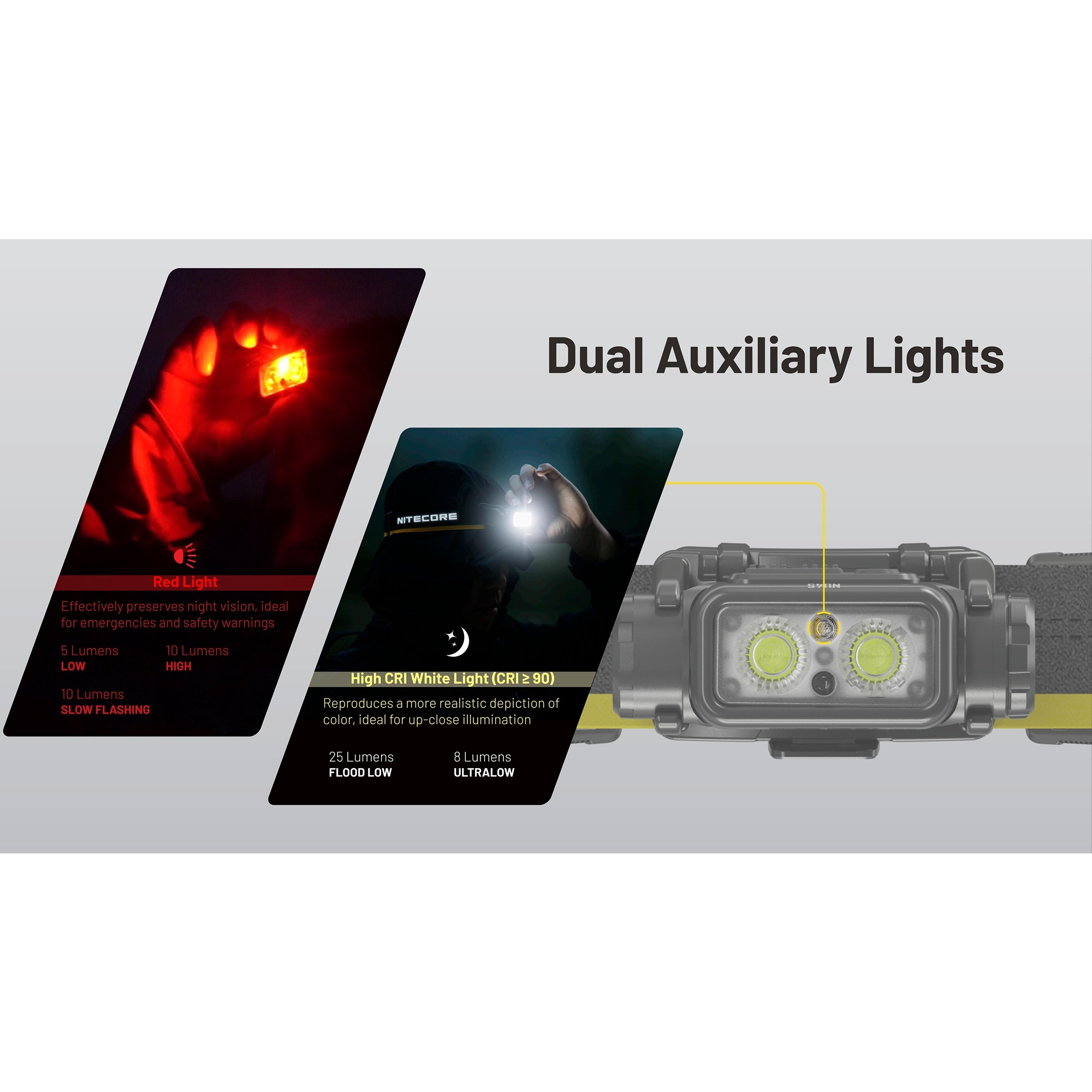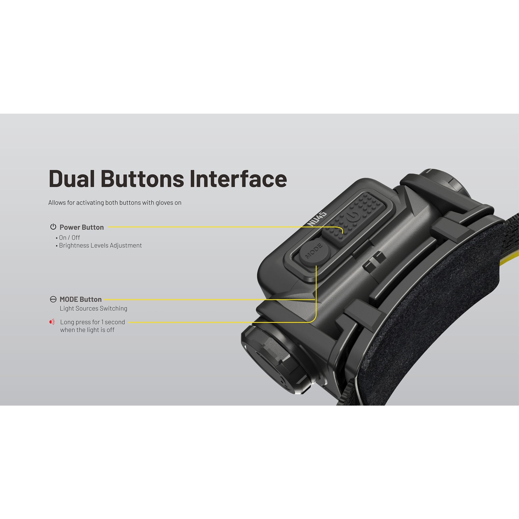 Denne genopladelige pandelampe er bestykket med 8 NiteLab UHE LED’er og giver dig flere lystyper: hvidt lys, high CRI-hjælpelys og rødt lys. Det gør lampen praktisk til både tempo, navigation og opgaver tæt på, hvor et mere behageligt og naturligt lys kan være en fordel. Nitecore NU45 er også udstyret med en intelligent sensor protection-funktion, som automatisk dæmper lysstyrken, hvis den indbyggede optiske sensor registrerer noget lige foran lampen. Det mindsker risikoen for overophedning og øger sikkerheden, når du bruger pandelampen tæt på udstyr, tøj eller i trange omgivelser. Ved behov kan funktionen deaktiveres midlertidigt.