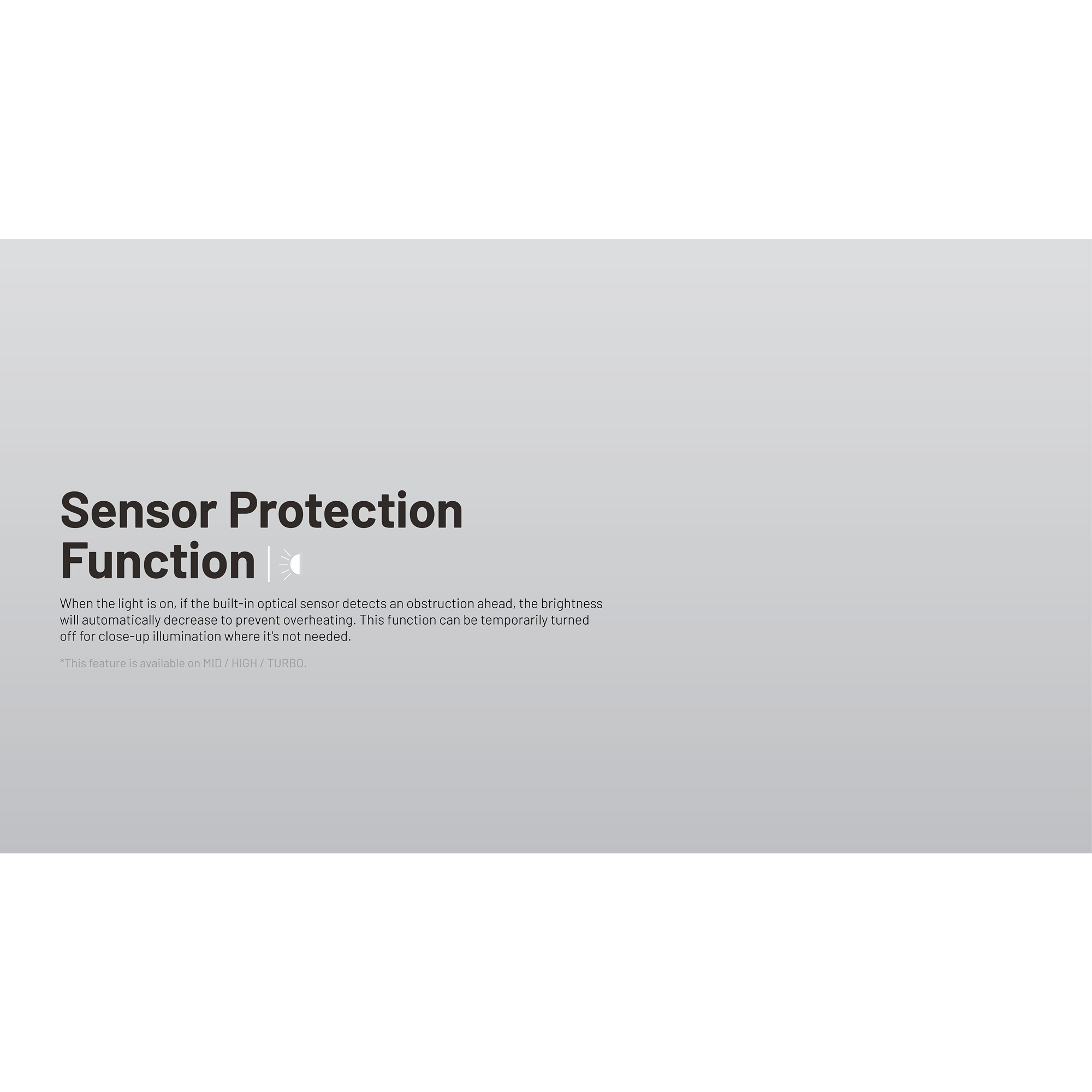 • Sensor protection dæmper automatisk lyset ved forhindringer tæt på linsen og gør brugen mere sikker.