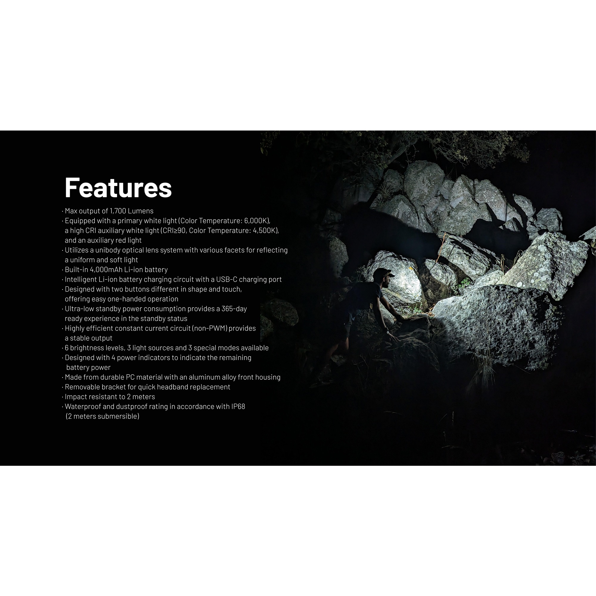 Nitecore NU45 er en stærk Nitecore pandelampe, der leverer op til 1700 lumen og lyser helt op til 172 meter. Samtidig får du en driftstid på op til 86 timer, hvilket gør den oplagt til natløb, outdoor, camping og andre krævende opgaver, hvor både komfort og ydeevne er vigtig. Den har et indbygget 4.000 mAh Li-ion-batteri, hurtig opladning via USB-C samt IP68-beskyttelse mod vand og støv. Det, der især kendetegner Nitecore NU45, er kombinationen af høj effekt og lav vægt.