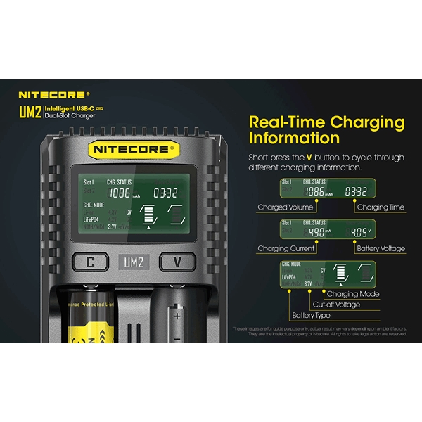 Nitecore UM2 er smart designet til at vælge mellem tre opladningstilstande – CC, CV og -dV/dt – baseret på batteriets type og kapacitet, hvilket garanterer en optimal opladningsoplevelse hver gang. Skulle et overopladet IMR-batteri blive opdaget, vil UM2 informere dig om dette med en tydelig "EE EE"-advarsel på skærmen. En simpel lang tryk på V-knappen vil sætte gang i en gendannelsestilstand, så dine batterier bliver sikret og opladningen kan fortsætte. For batterier, der er overafladede eller beskyttet af et kredsløb, har UM2 evnen til at teste og aktivere disse før selve opladningen påbegyndes. Dette sikrer, at selv de mest udfordrede batterier bliver behandlet korrekt og sikkert.