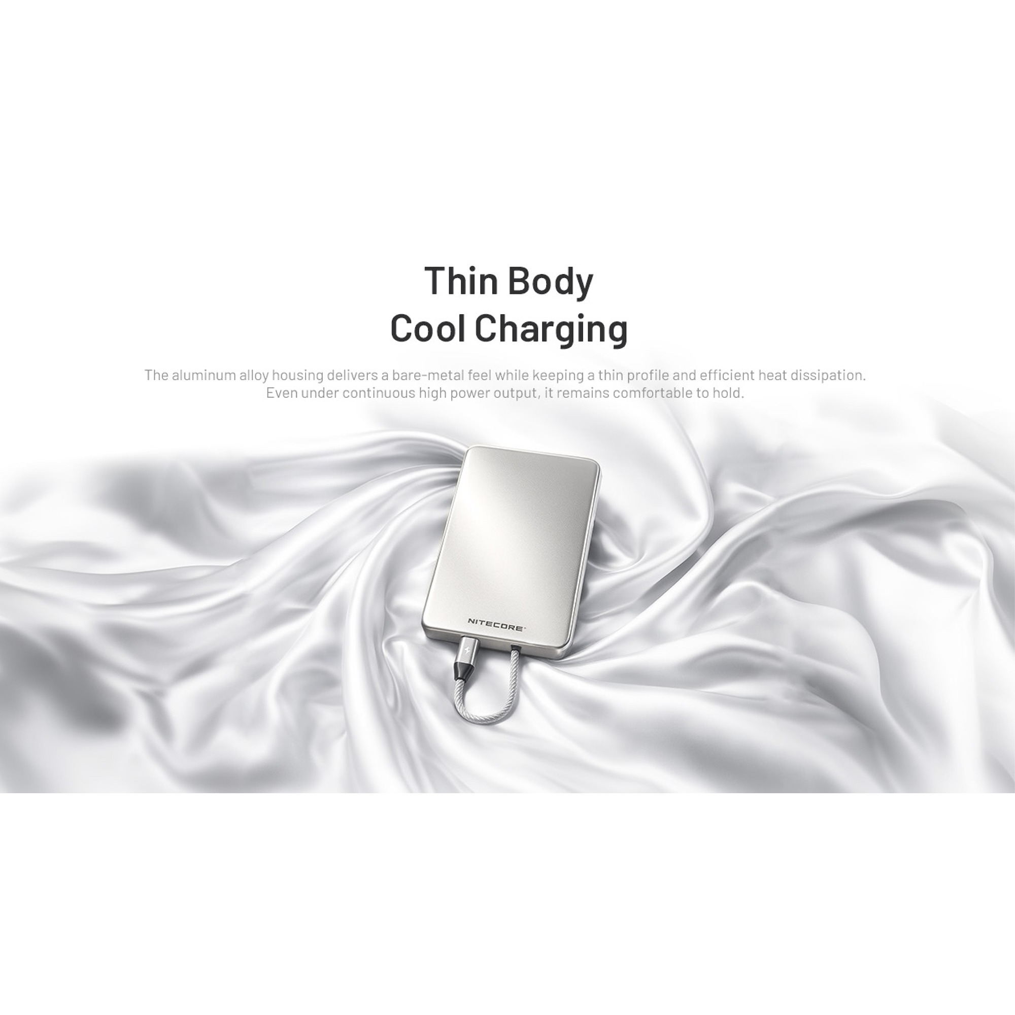 Den orange farve giver et tydeligt look, og den flade form med afrundede kanter gør Nitecore POCKET 5 nem at tage med som mobil oplader i hverdagen.