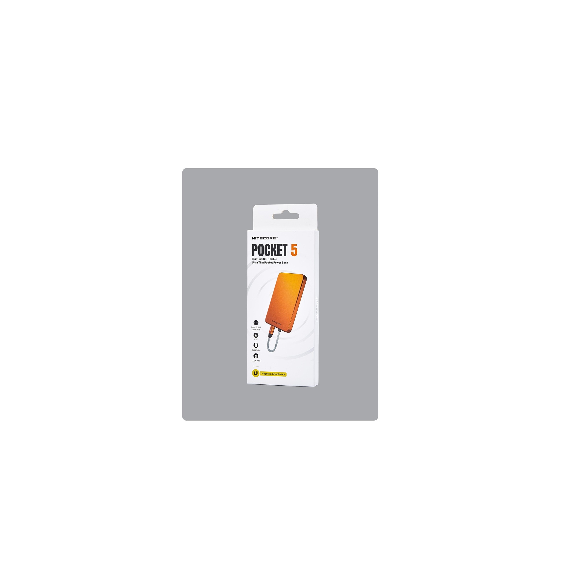 Nitecore POCKET 5 powerbank 5000mAh med magnet og indbygget USB-C kabel, orange