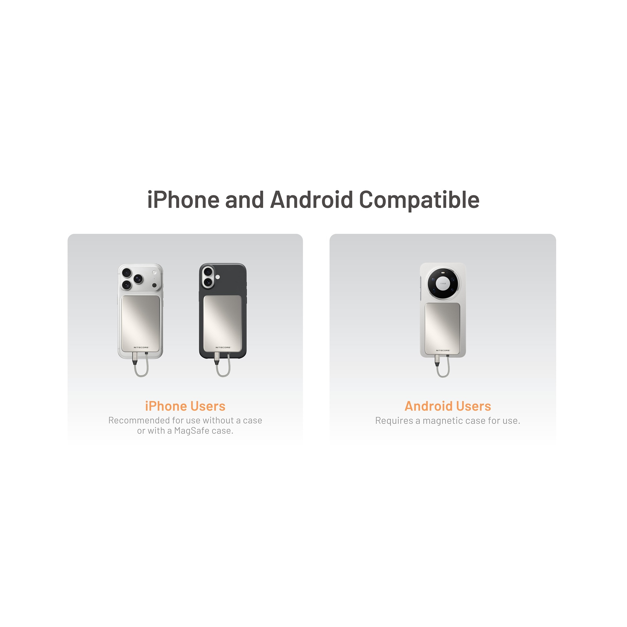 Det smarte ved Nitecore POCKET 5 er magneten, der gør det muligt at sætte powerbanken fast på kompatible smartphones eller covers med magnetfunktion. Den er ikke beregnet til trådløs opladning, men kommer i stedet med et fast integreret USB-C-kabel. På den måde kan du oplade, mens powerbanken sidder sikkert på telefonen, så du undgår at den dingler i kablet.