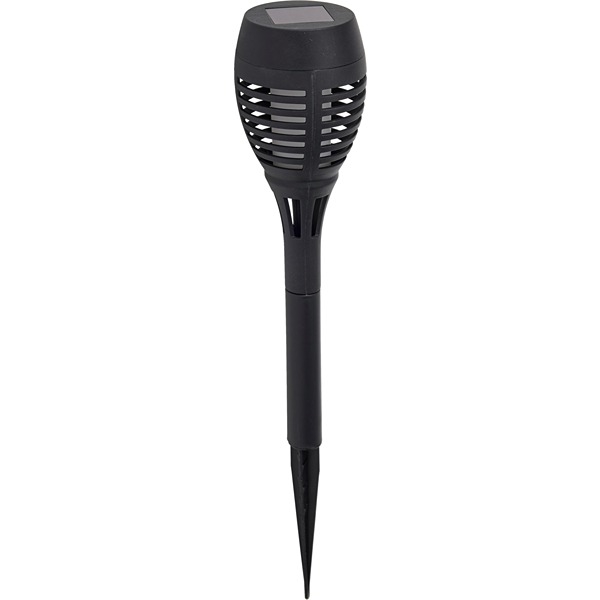 Det integrerede solpanel oplader automatisk det medfølgende 1xAAA 1,2V Ni-MH 100 mAh batteri, som kan udskiftes med et tilsvarende. Der er tænd/sluk-knap, og faklerne er lavet i sort PP-materiale.