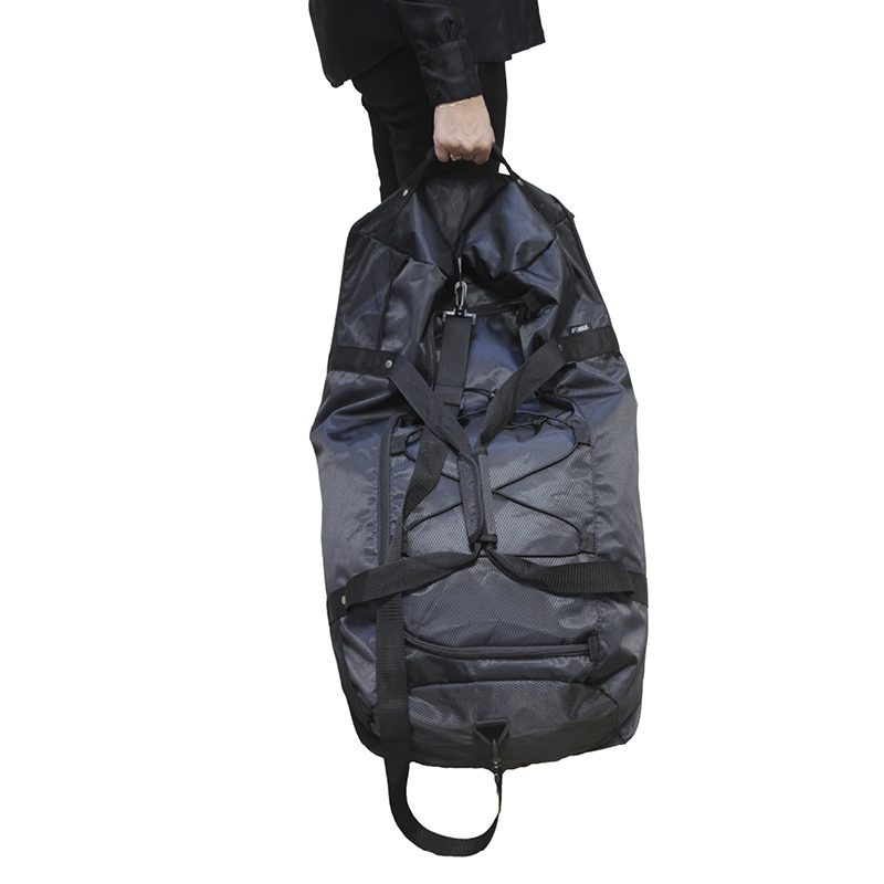 Tasken har en sort lynlås, elastiksnor øverst til fastgørelse af et tæppe eller pude, og to mesh-sidelommer til fx vandflasker. Når den ikke bruges, kan den foldes sammen for kompakt opbevaring, eller som en ekstra taske i kufferten. En alsidig og funktionel rejsetaske til både weekend- og længere ture.