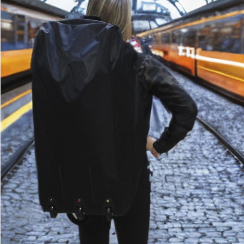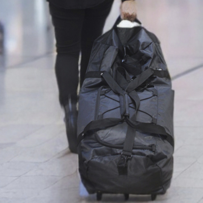 Foldbar rejsetaske i sort med masser af plads og hjul