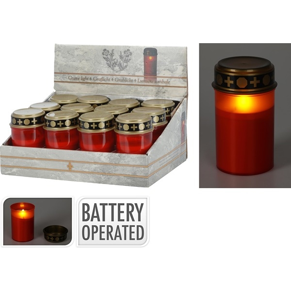 Skab en varm og stille stemning ved gravstedet med dette røde LED gravlys. Lyset er 12 cm højt og giver et blødt, let flakkende skær, som minder om levende ild. Med IP44-klassificering er gravlyset lavet til udendørs brug og kan stå ude i vind og vejr.