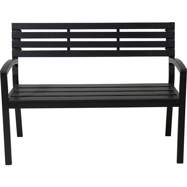 Sort havebænk i Polywood med armlæn, 115 cm lang