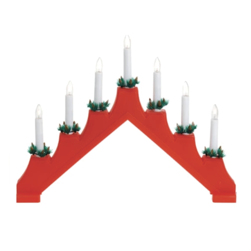 Produkt:  Svensk Stearinlysstage med 7 Lyspærer, Rød