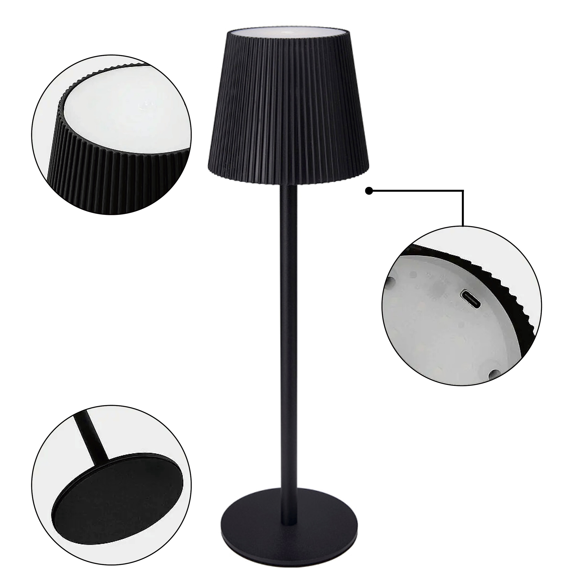 Trådløs bordlampe med touch og dæmper, H: 36 cm, sort