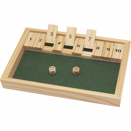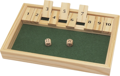Dette klassiske klapspil, også kendt som Shut the Box, er en blanding af held, matematik og strategi. Det er perfekt til både enlige spillere og grupper, anbefales fra 6 år og op. Spillets mål er at lukke flest mulige numre ved hjælp af to terninger og deres sum.